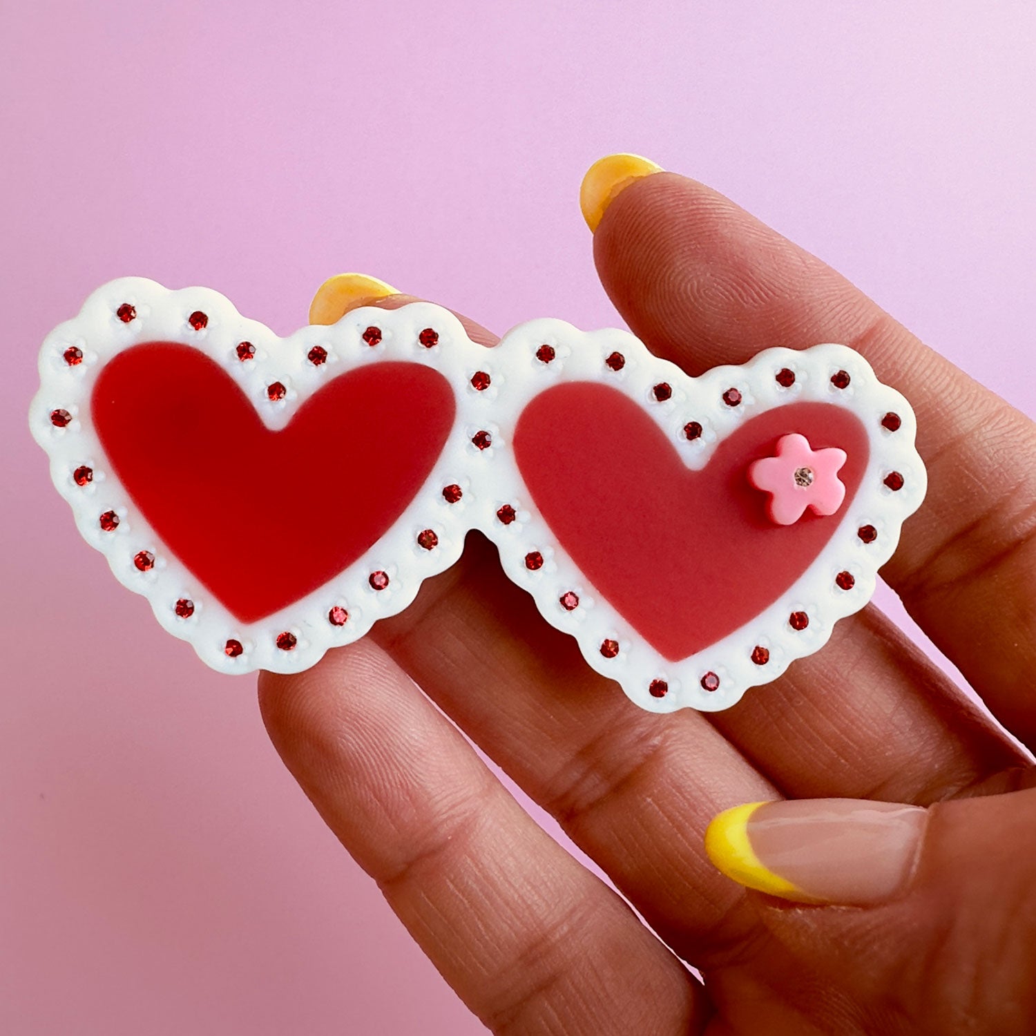 Be my valentine with this cellulose acetate Laced Heart Hair Claw on mate finish!